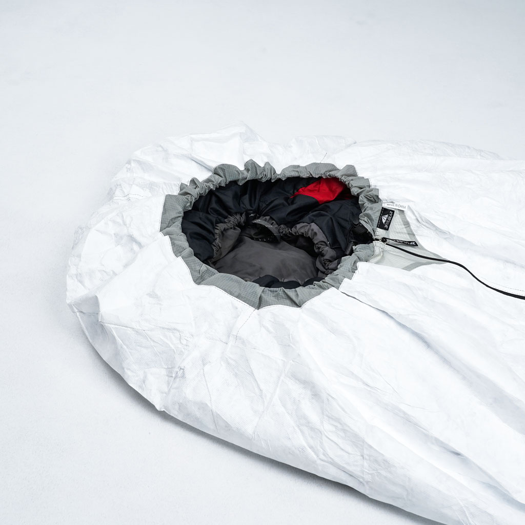 Tyvek Bivy od 3F UL Gear zvyšuje efektivitu a izolaci tvého spacího systému. Spodní část (footbox) je plně uzavřena, aby dokonale chránila nohy před vlhkostí, zatímco horní část lze díky zipu snadno rozepnout. Tento systém nejen chrání před kondenzací, ale také zlepšuje tepelný komfort. Pokud preferuješ spaní pod tarpem, je to pro tebe ideální volba.