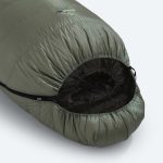 Pro jednoduchou orientaci je stahování kapuce a límce odlišeno, kapuci stahujete plochým popruhem a límec gumičkou. Spacák má naducaný límec s peřím, který obepne váš krk z obou stran a zabrání únikům tepla přes kapuci. Uvnitř spacáku je síťová kapsa na mobil, špunty do uší či jiné drobnosti.