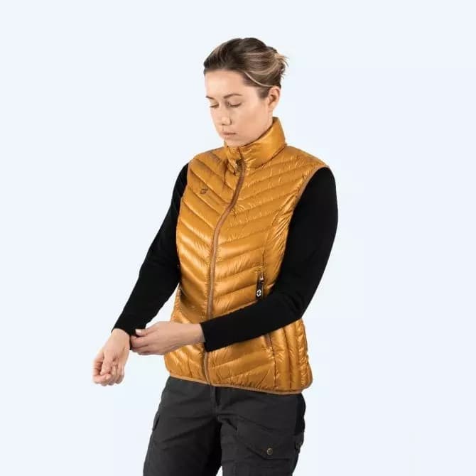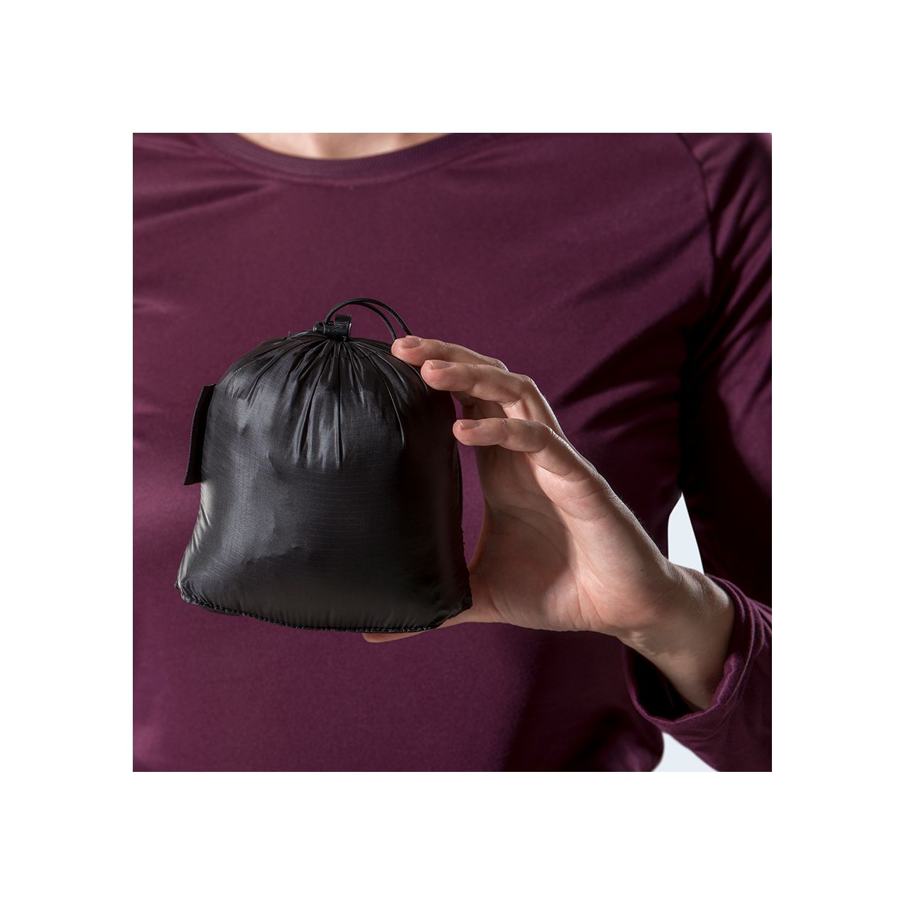 Péřová vesta Minilite je sbalitelná do vnější kapsy, součástí balení je také skladovací vak o rozměrech 12/7 cm a objemu 0,5 l. Celková hmotnost ve velikost M je 175 gramů.