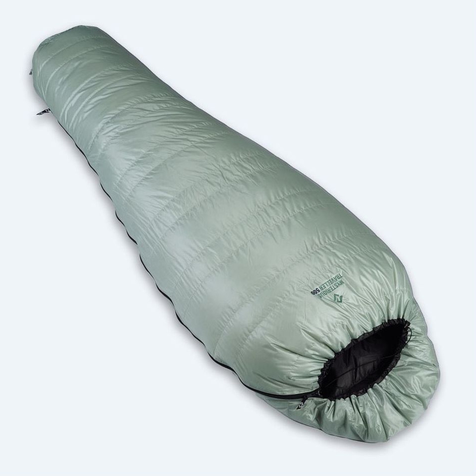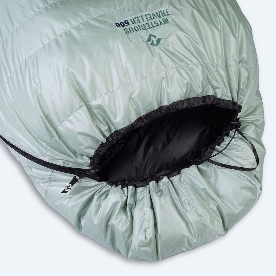 Spacák používá trapézové komory, které zabraňují vzniku „chladných míst“ v místě sešití dvou komoru. Řada Mysterious Traveller je trochu prostornější. Šířka spacáku v ramenou je 80 cm a v bocích 55 cm. Standardní velikost M vhodná pro osoby s výškou maximálně 190 cm.