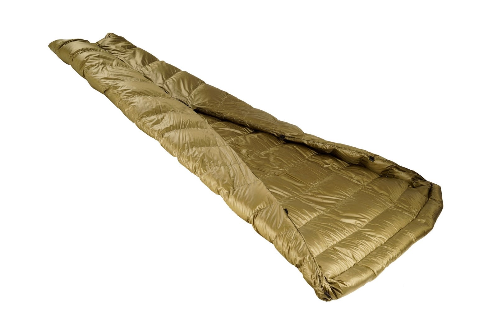 Pro úsporu hmotnosti a zvýšení efektivity jsou quilty zbaveny všeho nepotřebného. Na jeho zadní straně od pasu nahoru je odstraněno neefektivně nevyužité peří, které by bylo většinu času slehlé pod vaším tělem a prakticky by němelo žádný význam.
