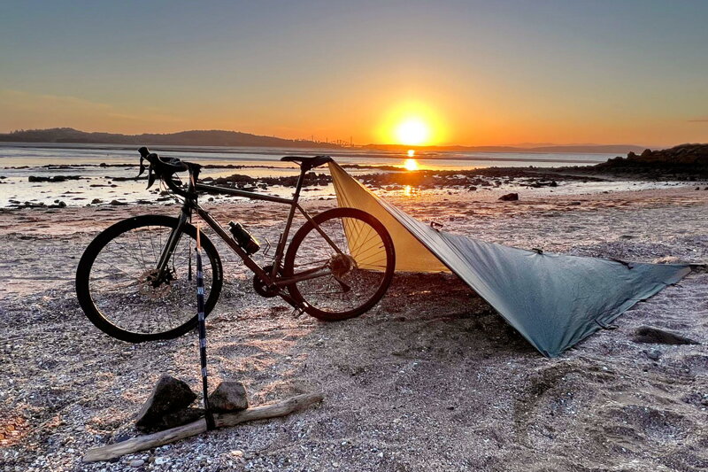 - můžete si postavit přístřešek na trekové hole nebo plachtu zavěsit přes sedadlo kola