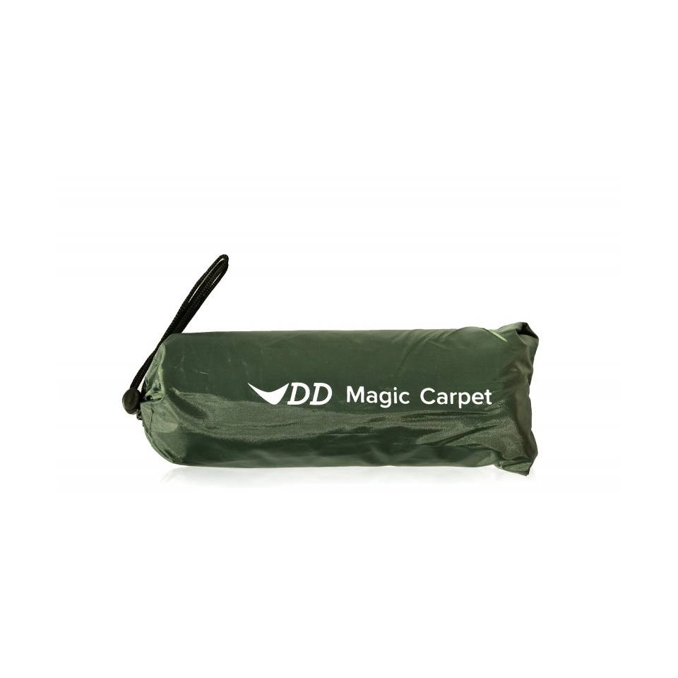Voděodolná plachta se čtyřmi kotvícími body, kterou lze použít jako podlážku nebo nouzový přístřešek. Je dostatečně velká, aby na ní mohly ležet dvě osoby. DD Hammacks Magic Carpet je konstruován z ripstop nylonu s PU zátěrem s vodním sloupcem 3000 mm