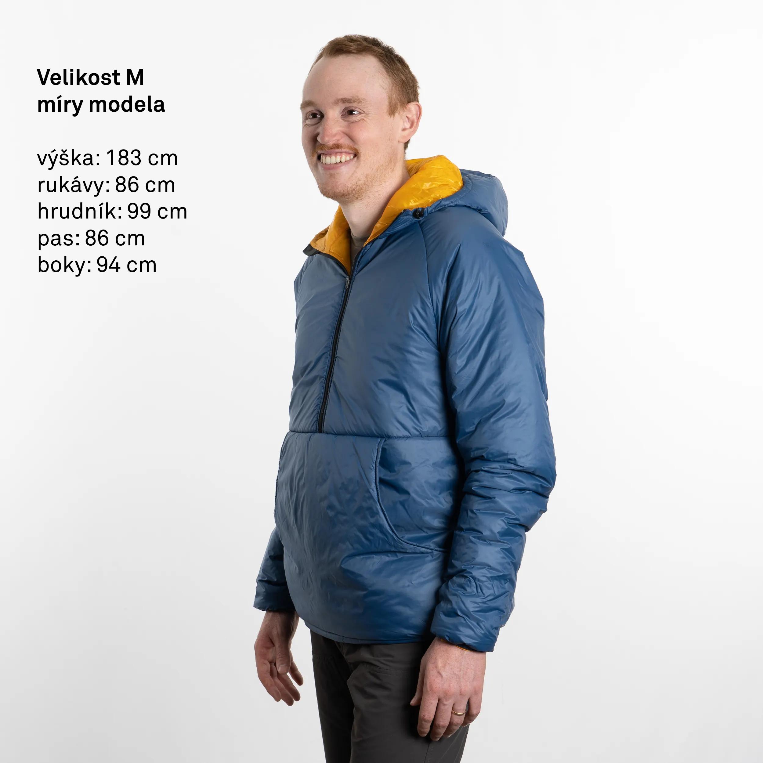 Bunda je vyrobená z 10D nylonu, který je lehký, dobře sbalitelný a rychle schne. Na vnější straně je látka opatřena DWR úpravou, která zadrží lehkou kondenzaci vzdušné vlhkosti či pár kapek vody. Materiál je také dobře větruodolný, což ti pomáhá se udržet v teple i v náročných podmínkách, o které na dlouhých trailech není nouze.