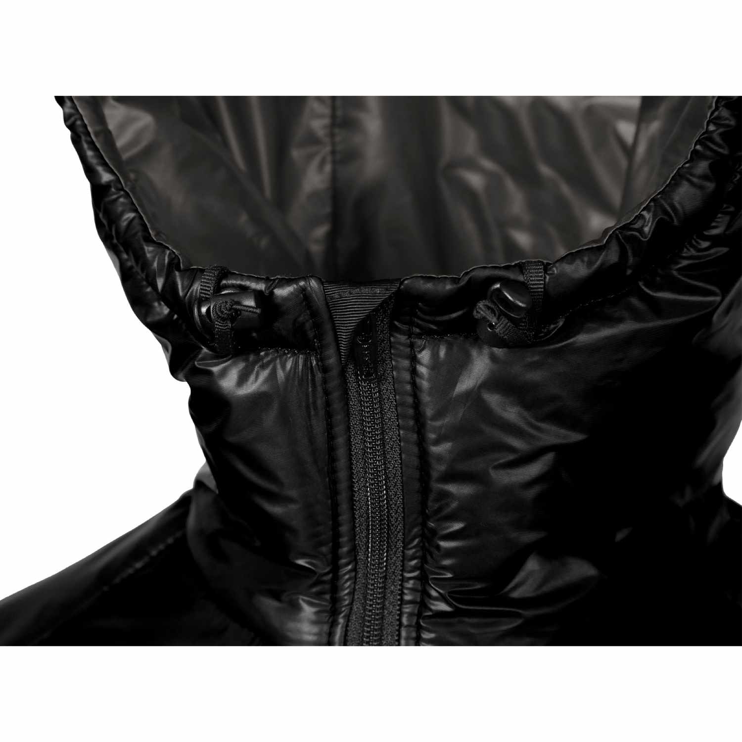 Pohodlná kapuce je opatřena stahovací šňůrkou, stejně jako spodní okraj bundy, který po stažení zabrání dalšímu pronikání chladu a vlhkosti spodem bundy.