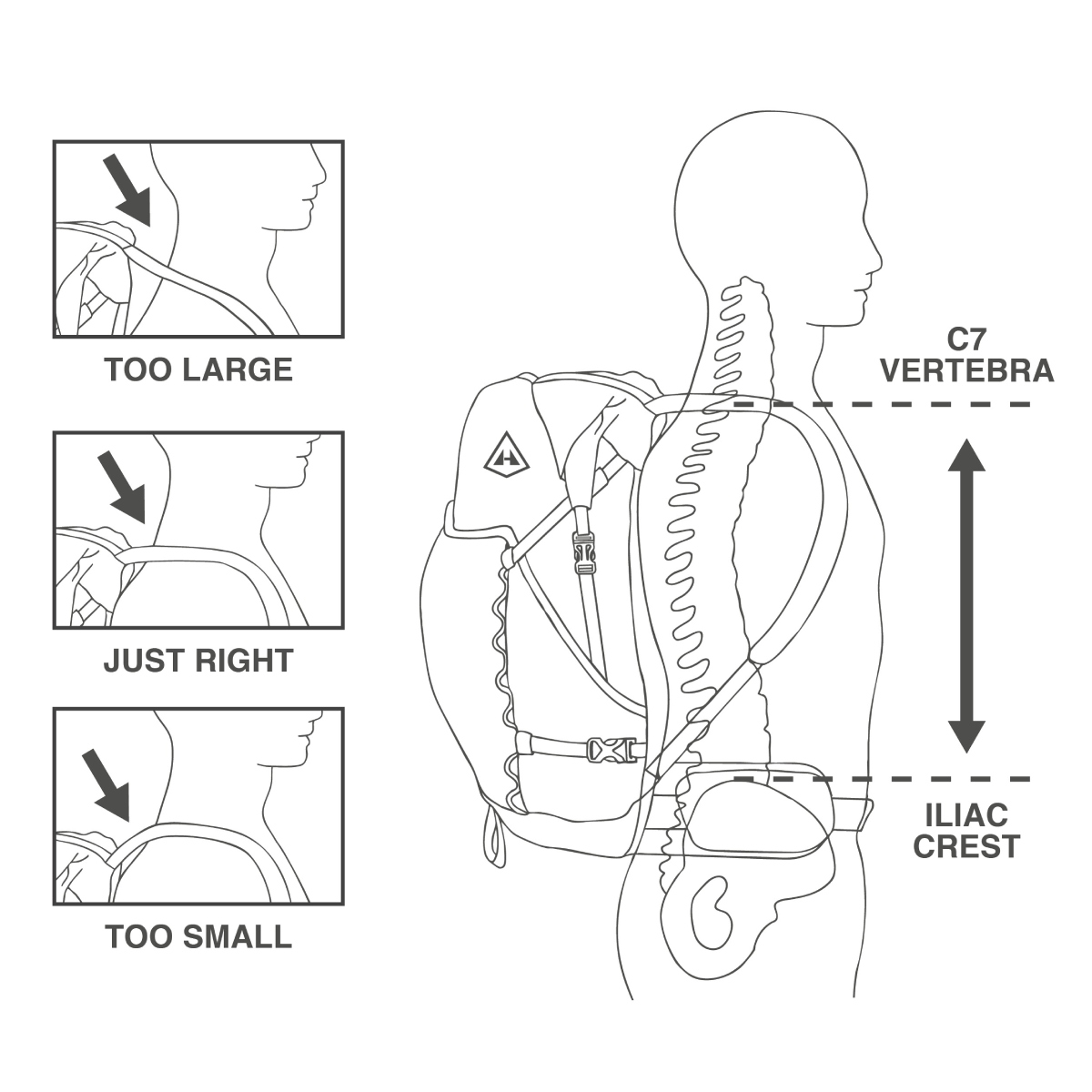 Prostor pro hydrovak: Uvnitř batohu je síťová kapsa o rozměru 20,3 x 35,6 cm na hydrovak a poutko pro jeho zavěšení. Na jedné straně je pak otvor pro hadičku hydrovaku krytý lemem a suchým zipem.