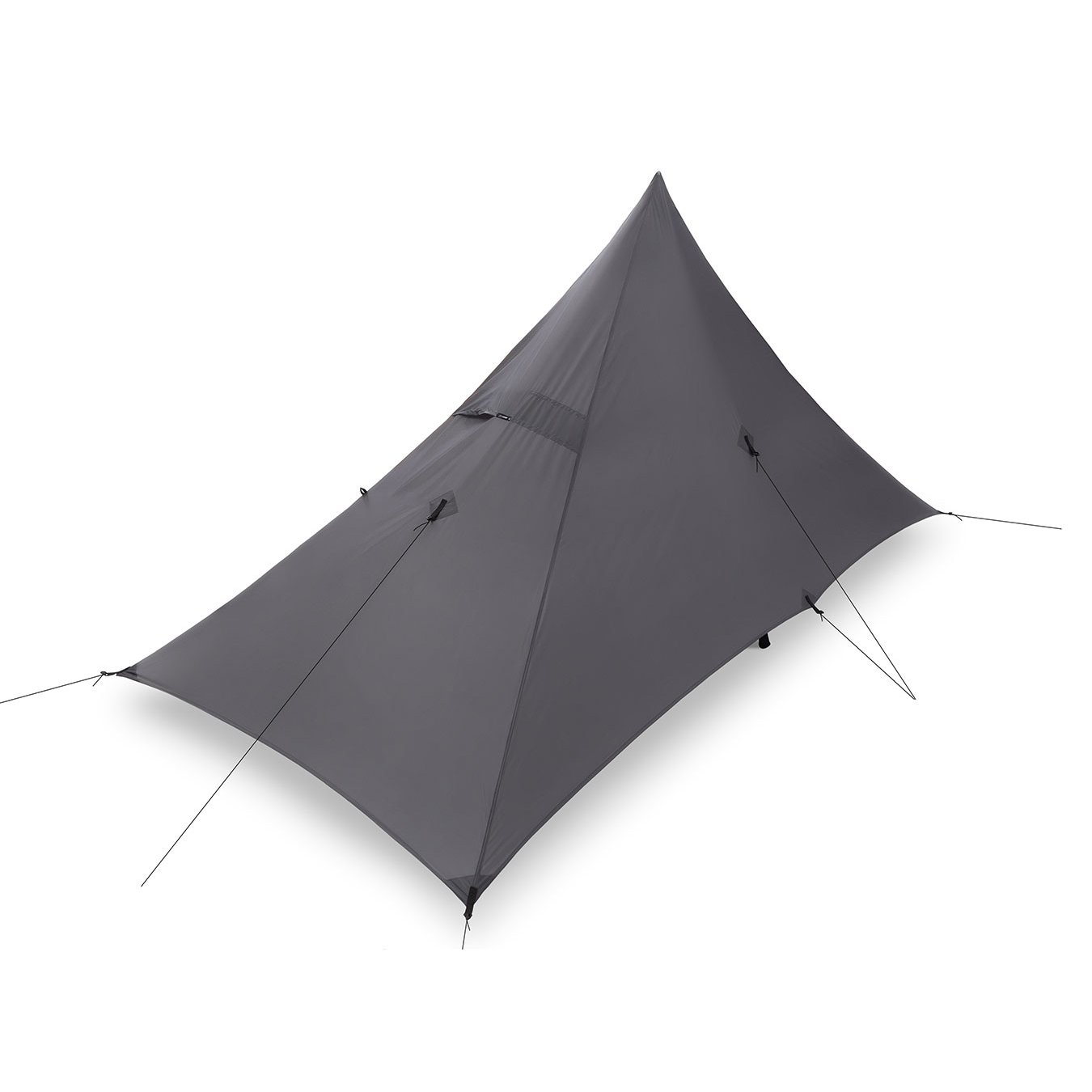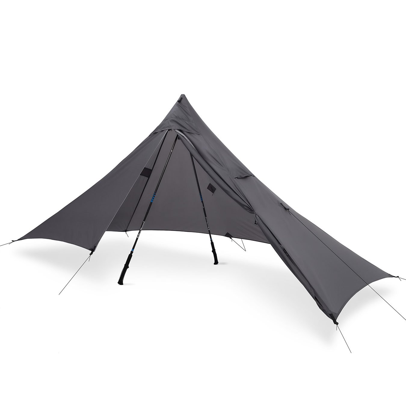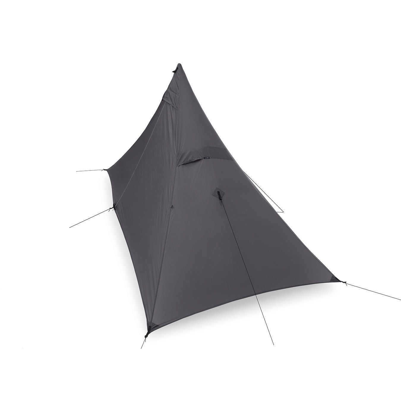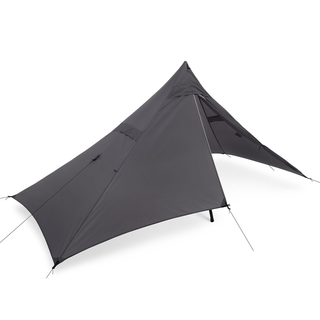 Poncho Pyraomm má pyramidový tvar. Tento tvar vyniká opravdu skvělou odolností vůči větru. Pokud je tarp dobře ukotven kolíky a treková hole dobře zajištěna, tarp se nemá v silném větru kam prakticky zbortit. Skvěle odolává také dešti, kdy voda kvůli strmým stěnám jednoduše odteče. Pyramidy mají opravdu nízkou hmotnost a jednoduše se staví.