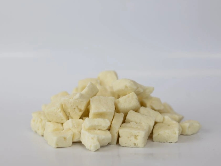 Sýry jsou po lyofilizaci křehké, ne tvrdé. Po vložení do úst se začnou pomalu rozpadat. Vysoký obsah bílkovin a tuků přispívá k delšímu pocitu sytosti – zaženou hlad, únavu i mlsnou chvilku. Lyofilizované sýry si zachovávají strukturu a výraznou chuť, a navíc jsou zcela bez přidaných látek a konzervantů.
