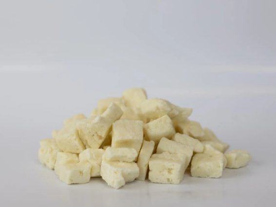 Sýry jsou po lyofilizaci křehké, ne tvrdé. Po vložení do úst se začnou pomalu rozpadat. Vysoký obsah bílkovin a tuků přispívá k delšímu pocitu sytosti – zaženou hlad, únavu i mlsnou chvilku. Lyofilizované sýry si zachovávají strukturu a výraznou chuť, a navíc jsou zcela bez přidaných látek a konzervantů.