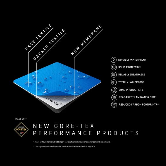 - nová generace membrány Gore-Tex Performance Shell ePE 40D z 100% recyklovaného nylonu s hladkým povrchem