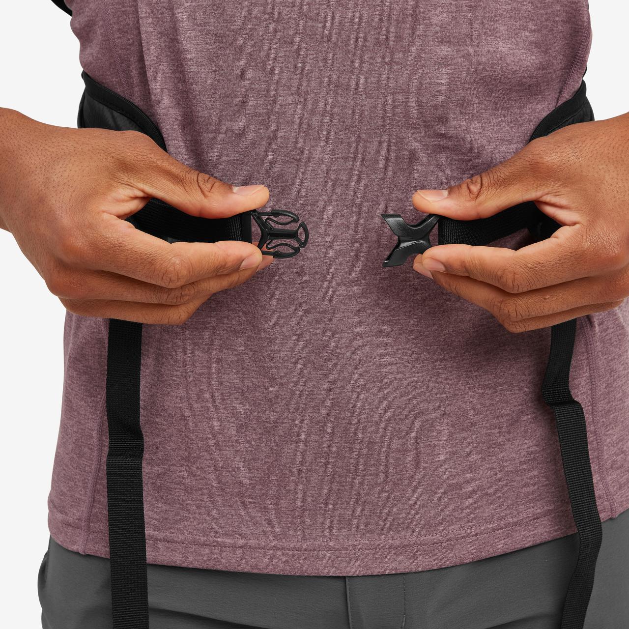 Pohodlný bederní pás má 2 snadno přístupné kapsy na zip vhodné na svačinu nebo peněženku. Dvě boční síťované kapsy umožňují rychlý přístup k lahvi s vodou.