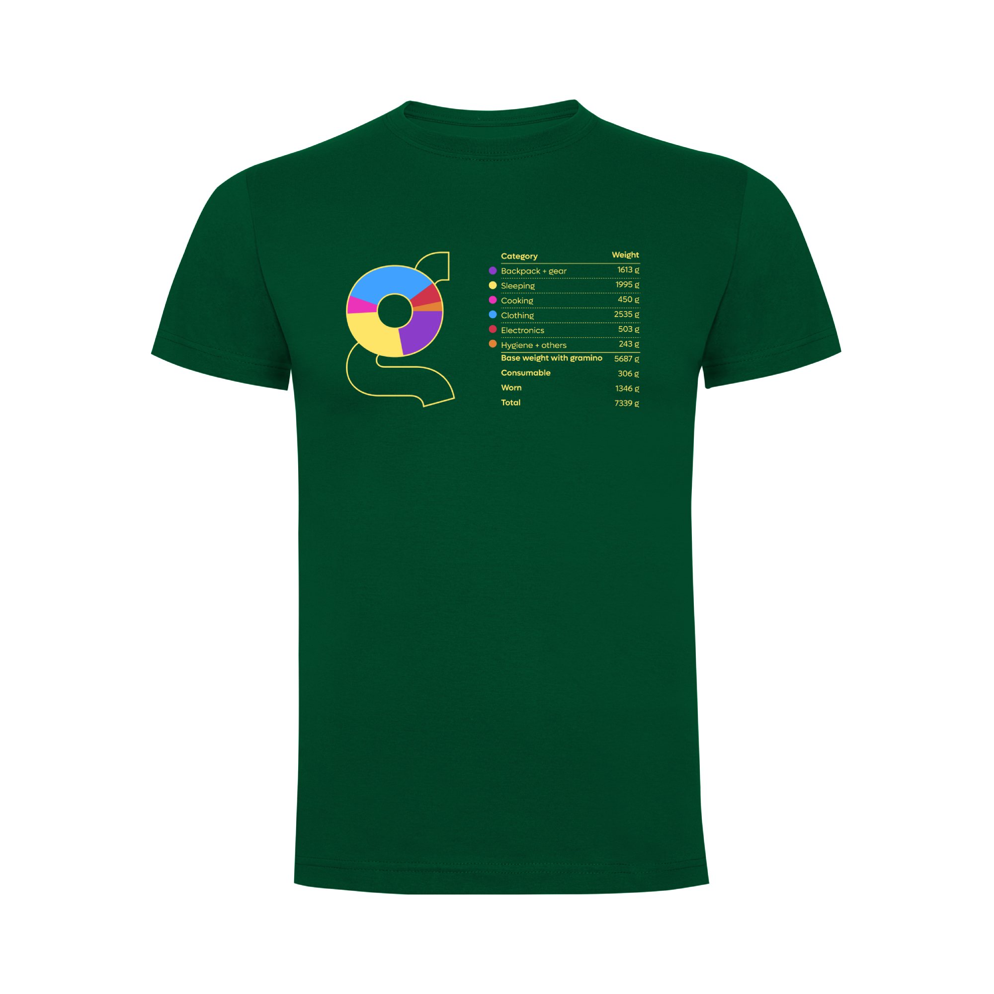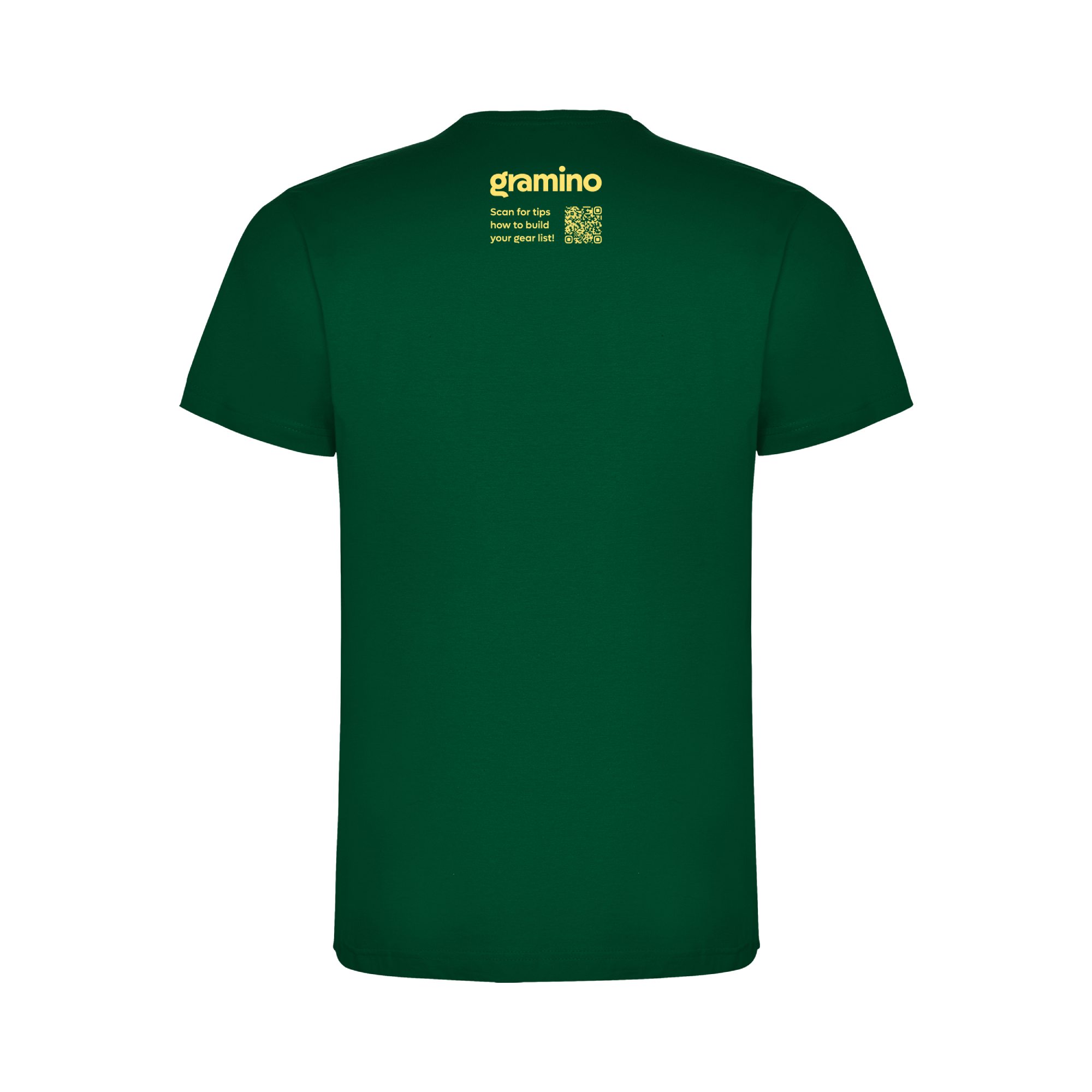 Tričko Gramino Gear List z naší vlastní dílny je inspirováno reálným seznamem vybavení, který jsme si sestavili v naší oblíbené aplikaci LighterPack. Jde o výbavu, se kterou by ses nemusel bát vyrazit ani několik tisíc kilometrů dlouhý trail v teplotách do cca 0 °C. Co jsme zahrnuli do seznamu vybavení na tričku se základní hmotností (base weight) 5,7 kg? Podívej se zde a načerpej inspiraci pro vlastní gear list, najdeš tam i odkazy na jednotlivé položky.