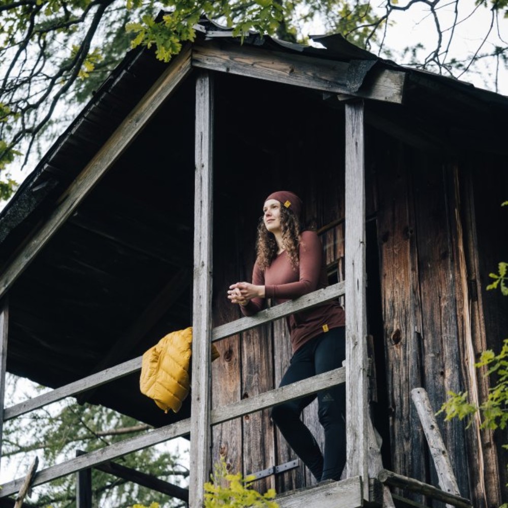 Maximální pohodlí při nošení i pod popruhy těžkého batohu zajišťují ploché švy, které eliminují riziko oděrů a nepříjemného tření. Samotná pletenina je řešena formou žebrovaného úpletu, což materiálu dodává vysokou míru elasticity bez nutnosti přidávat umělý elastan. Triko má dlouhý rukáv a anatomický raglánový střih, aby kopírovalo postavu, ale zároveň neškrtilo. Na spodním lemu je decentní vytkávaný štítek. Celý produkt je vyroben v České republice.