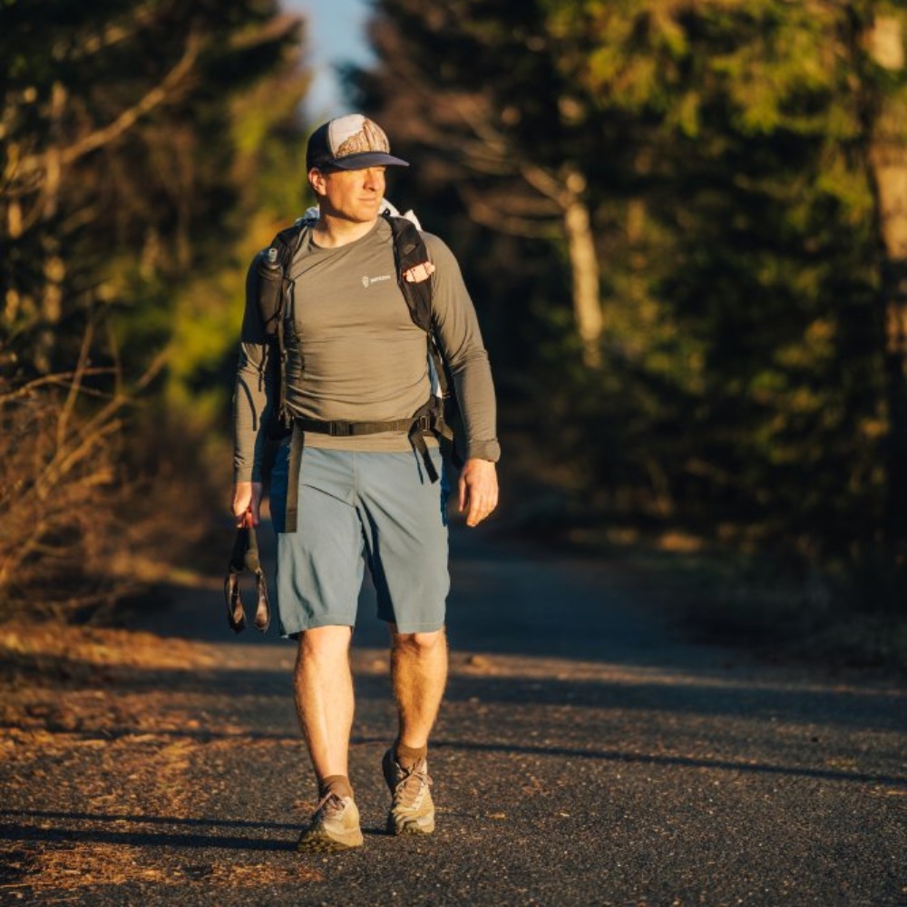 Maximální pohodlí při nošení i pod popruhy těžkého batohu zajišťují ploché švy, které eliminují riziko oděrů a nepříjemného tření. Samotná pletenina je řešena formou žebrovaného úpletu, což materiálu dodává vysokou míru elasticity bez nutnosti přidávat umělý elastan. Triko má dlouhý rukáv a anatomický raglánový střih, aby kopírovalo postavu, ale zároveň neškrtilo. Na spodním lemu je decentní vytkávaný štítek. Celý produkt je vyroben v České republice.