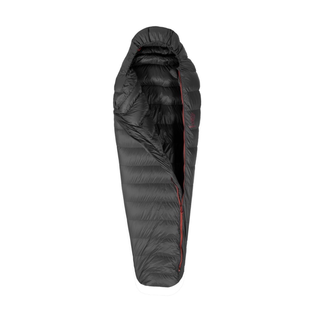 Pro vnější a vnitřní stranu spacího pytle je použita špičková látka Toray™ Airtastic™. Tento materiál je vyroben ze 100% recyklovaného nylonu, má velmi nízkou hmotnost (38 g/m), zároveň je ale pevný, větruodolný a neuvěřitelně příjemný na dotek. Látka je opatřena vodoodpudivou DWR úpravou C6, která je vysoce efektivní a ekologicky šetrnější. Dlouhodobá účinnost DWR úpravy je 80 % po dvaceti pracích cyklech. Postranní rovný poloautomatický zip SHZ umístěný na levé straně disponuje dvěma jezdci a je vyrobený z recyklovaného nylonu.
