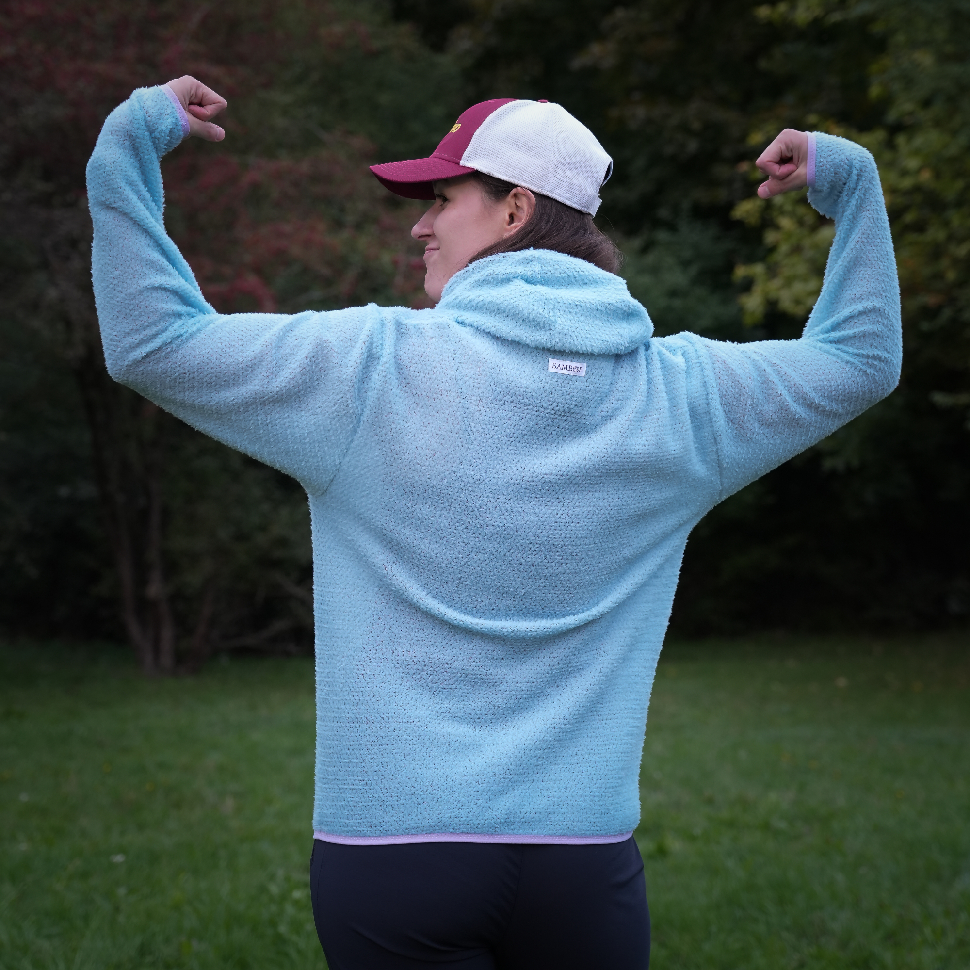 Mikina Sambob Alpha 90 Hoodie je vyrobena z materiálu Polartec Alpha Direct se střední gramáží 90 g/m². Díky tomu je extrémně lehká, prodyšná a příjemná na dotek, zároveň dobře hřeje a reguluje teplotu při aktivním pohybu. Samostatně poskytne dostatek tepla v mírném chladu a v kombinaci s větrovkou nebo nepromokavou bundou výrazně zvyšuje tepelný komfort. Skvělá univerzální volba od jara až do podzimu, případně i jako vrstva “navíc” do zimy. Mikiny z materiálu Alpha jsou velmi oblíbené mezi jednodenními turisty, běžci, lezci i hikery na dálkových trecích.