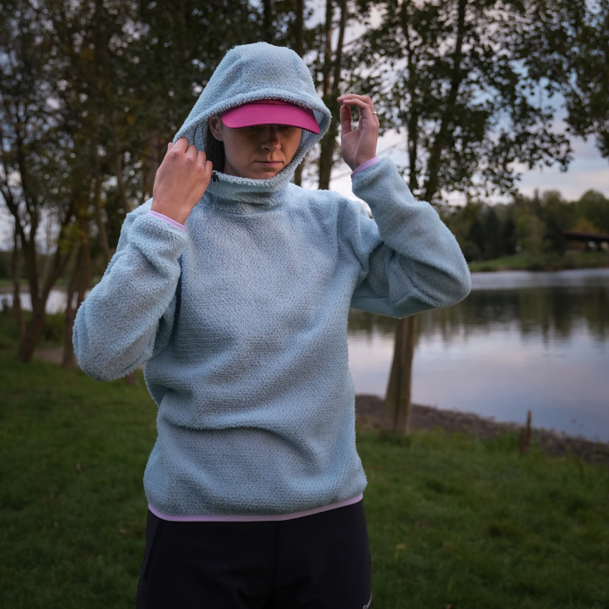 Údržba: Mikinu per ve studené nebo vlažné vodě (do 30 °C) na jemný program s tekutým pracím prostředkem bez aviváže a bělidel, ideálně v síťovaném sáčku na praní, aby se látka nezatrhla o zipy jiného prádla. Suš ideálně volně na ramínku nebo rozprostřenou, vyhni se vysokým teplotám v sušičce, přímému slunci a radiátoru.