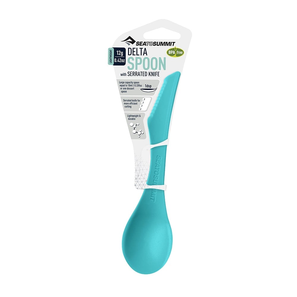 Jednoduchá a lehká lžíce s nožem v jednom. Stranu nože můžete použít na krájení zeleniny nebo namazání chleba. Lžíce je konstruována ze zdravotně nezávadného tvrzeného plastu.