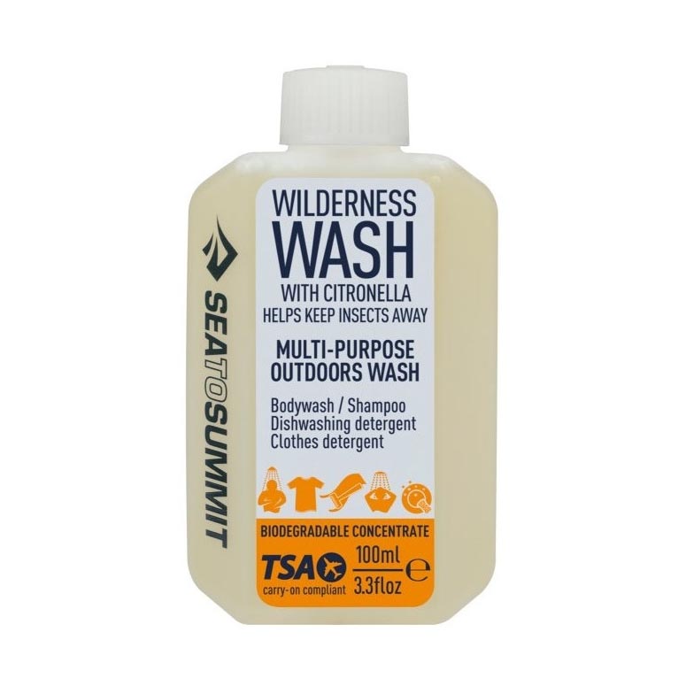 Univerzální čistící prostředek na mytí těla, nádobí a praní. Je biologicky odbouratelný.  Na jedno umytí stačí pár kapek. Varianta citronella navíc obsahuje éterické oleje, které pomáhají odpuzovat otravný hmyz a příjemně voní. Objem 100 ml projde i v příručním zavazadle.