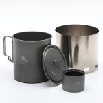 Tento set je navržen pro minimalisty, kteří chtějí mít celou „kuchyni“ sbalenou v jednom kompaktním celku. Základem celého systému je titanový hrnec o objemu 750 ml, do kterého po dovaření pohodlně schováš zbytek vybavení – lihový vařič a titanové závětří se stojánkem. Všechny části jsou vyrobeny z titanu bez nátěrů. Díky tomu je celý set korozivzdorný a lehký jako pírko.