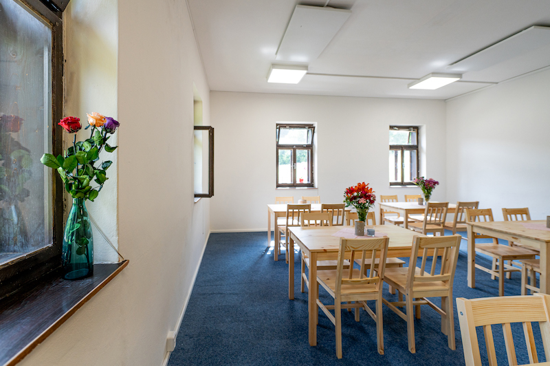 Základem festivalu je klasická romantika – spaní ve vlastních stanech na prostorné louce. Pokud ale preferuješ pořádnou střechu nad hlavou, máme k dispozici 40 lůžek přímo v budově ve sdílených pokojích (pro 2–4 osoby) se společným sociálním zařízením.