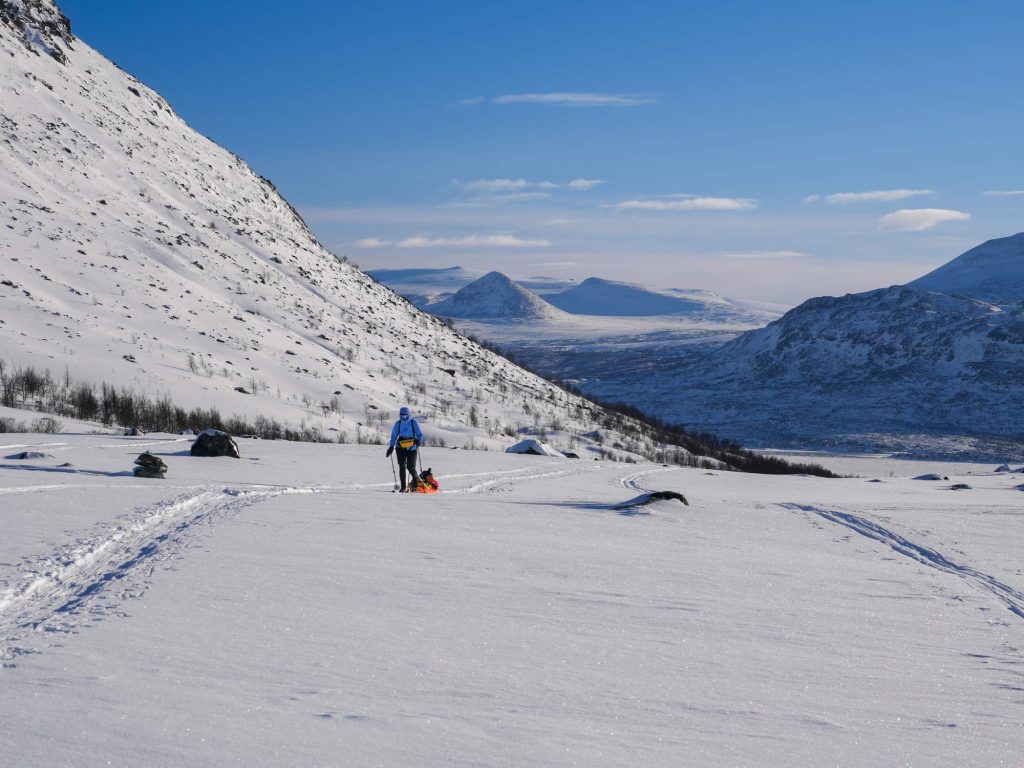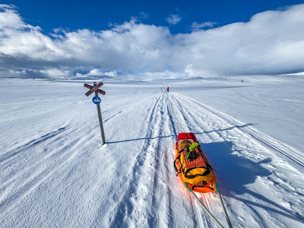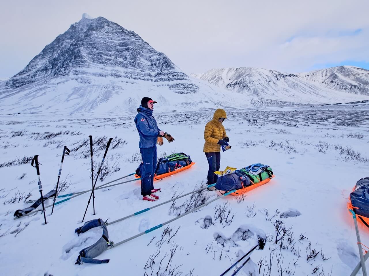 Zatím nejdelší a nejnáročnější výpravu jsme dali začátkem roku 2025. Společně s Davidem Czempkou, zakladatelem Gramina, a s Luckou Kutrovou a jejím parťákem Marvelem jsme přešli celý švédský Kungsleden. Zimní přechod 470 kilometrů dlouhé trasy nám zabral necelý měsíc a šli jsme ho na přelomu února a března. Po téhle výpravě už můžeme s čistým svědomím sdílet zkušenosti s vybavením, které to s námi odmakalo až do konce.