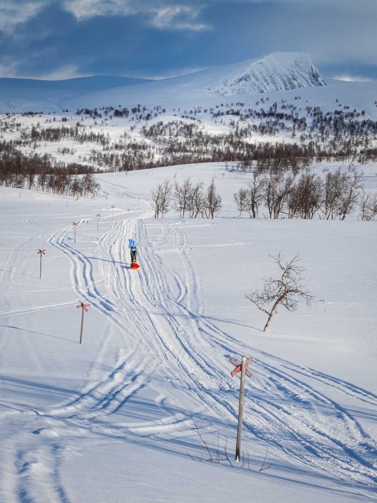 Do světa polární výprav jsem poprvé nakoukla v roce 2023 při 7denním přechodu ve švédském Laponsku – z Nikkaluokty do Abiska. Pokud se na první polární výpravu chystáš, tuhle trasu (cca 100 km) můžu jen doporučit. Po cestě narazíš na několik turistických chat a denních bivaků, které v zimní sezóně poslouží jako zázemí.